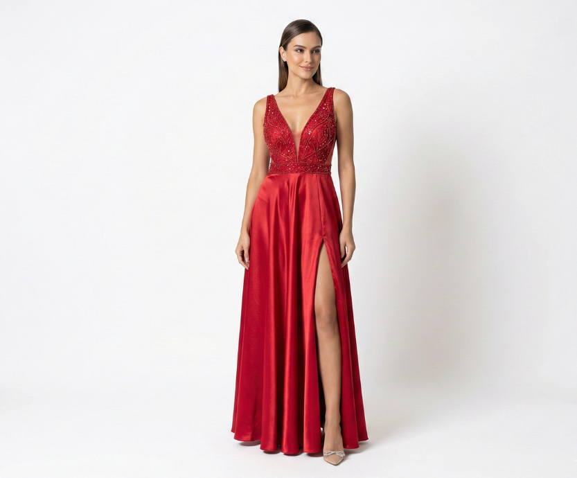 Esse vestido é ajustado especialmente para o seu corpo, com ajustes já inclusos no aluguel. Quando o modelo permite, também podemos adaptar detalhes como mangas, alças, bordados, fendas ou decotes.