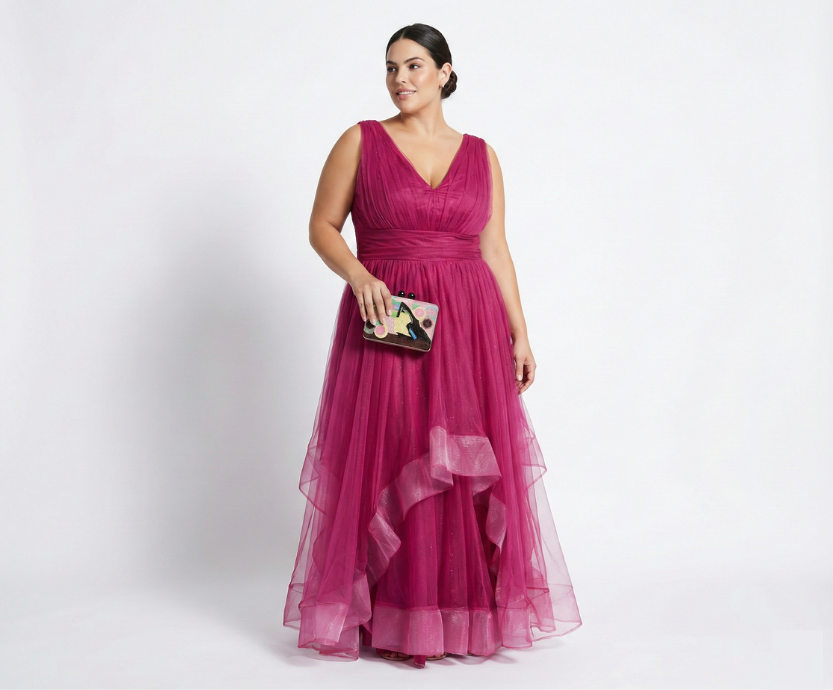 Vestido Fúcsia em Tule com Saia em Crinol